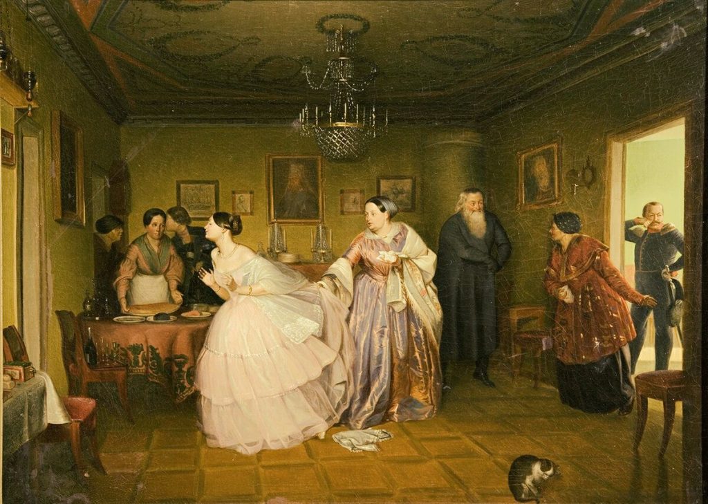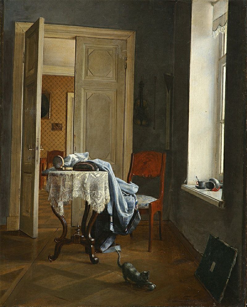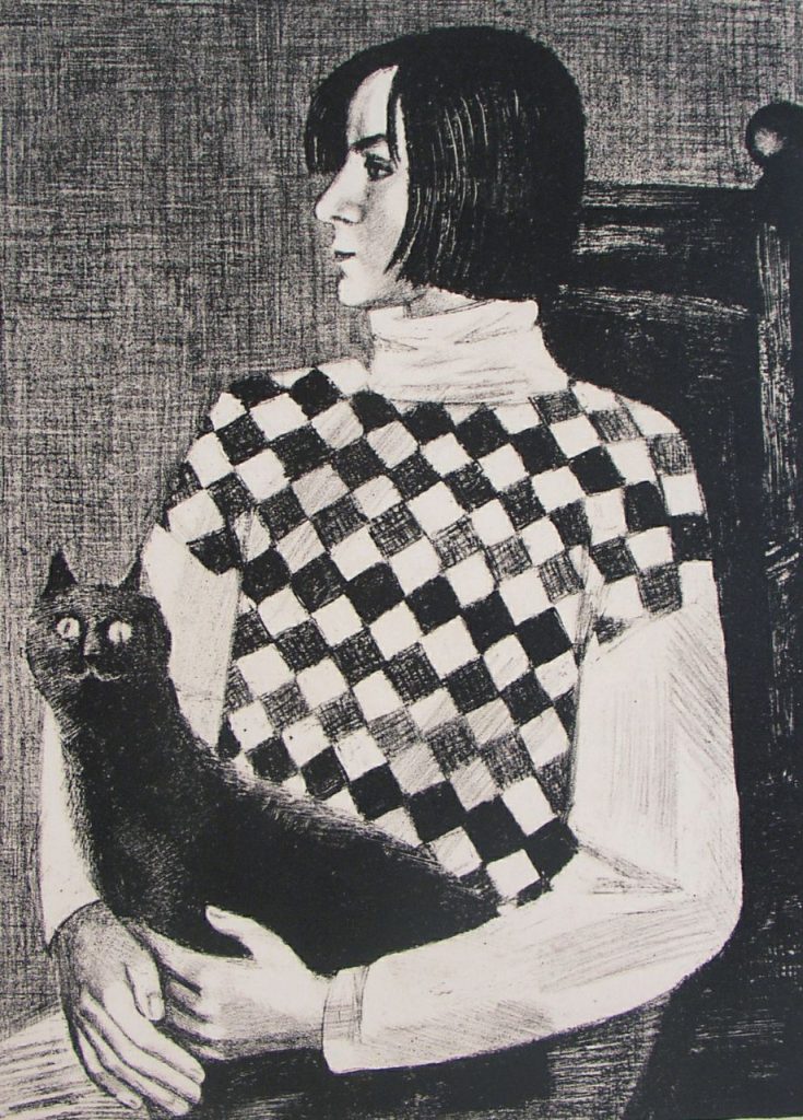 1.Мартиросова Е.А. Автопортрет с котом. 1985. Бумага, литография.2.Ржезников А.И. Женщина с кошкой. 1930-е годы. Бумага, карандаш.3.Бобров А.А. Проказы кошки. 1866. Холст, масло.4.Федотов П.А.(?). 1840–1850-е годы. Сватовство майора. Холст, масло.5.Нечитайло В.К. Март. 1977. Картон, масло.