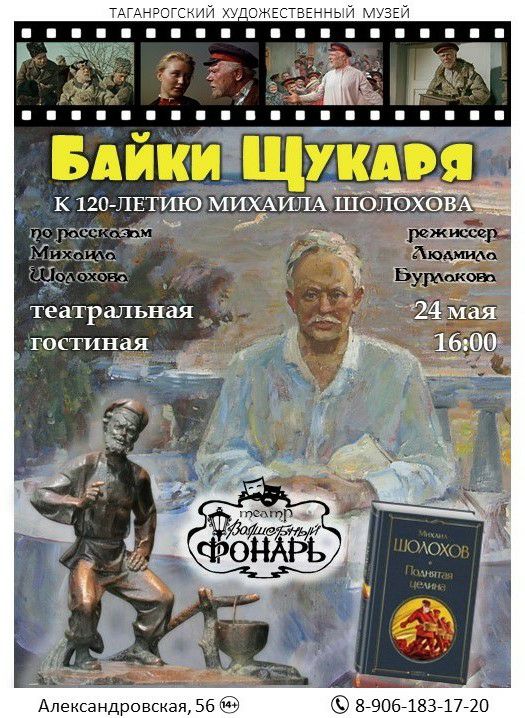 💡24 мая в 16:00 приглашаем отпраздновать 120-летие со дня рождения Михаила Александровича Шолохова в «театральной гостиной» художественного музея на веселом представлении «Байки Щукаря» таганрогского Народного театра «Волшебный фонарь