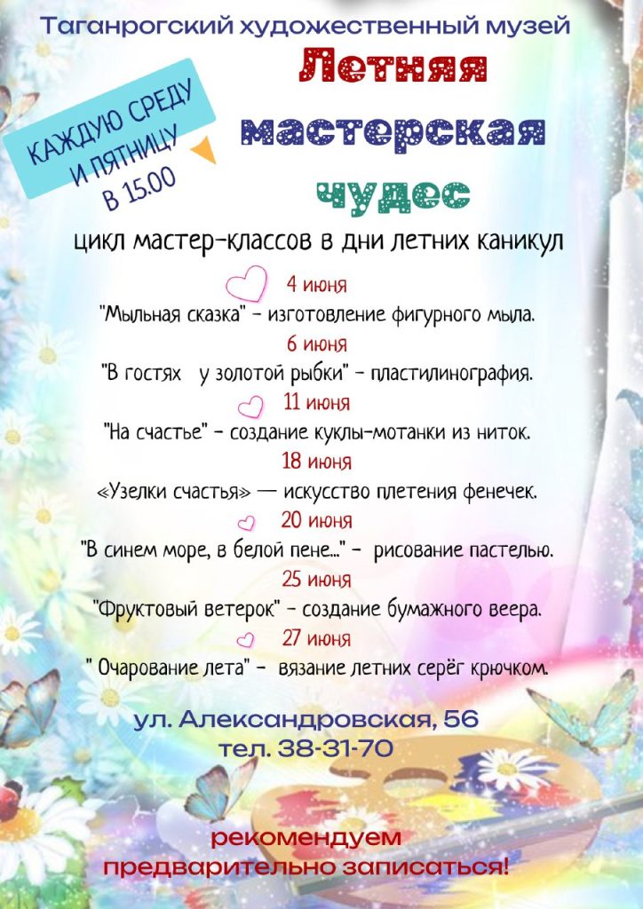 🙋♀Дорогие ребята и взрослые!🎨👩🎨 Художественный музей открывает для вас традиционную «Летнюю мастерскую чудес»!