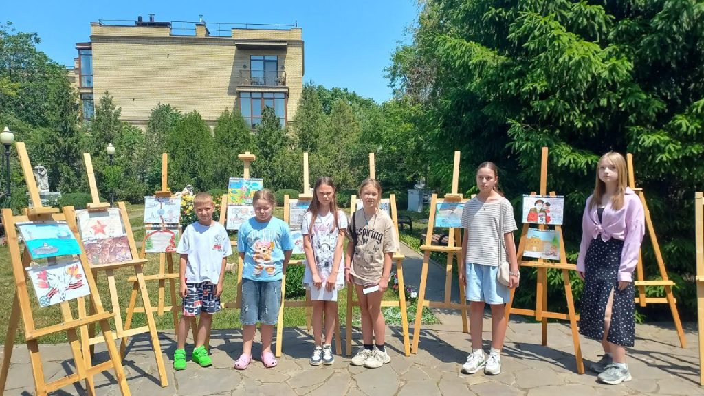 🌹🌹🌹По окончании экскурсии ее участники вышли во дворик ТХМ, где на мольбертах уже были выставлены детские конкурсные работы. И как финальный аккорд — памятное фото на фоне импровизированного вернисажа!