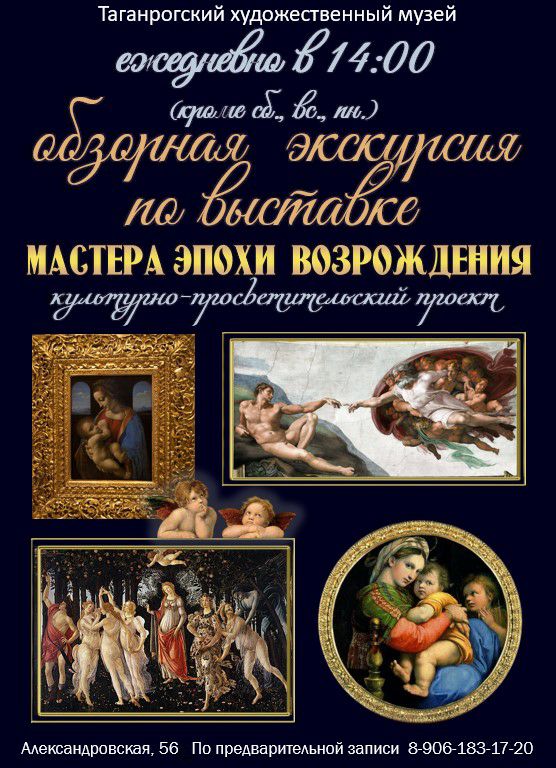 🖼️Приглашаем вас на обзорную экскурсию по выставке «МАСТЕРА ЭПОХИ ВОЗРОЖДЕНИЯ», на которой можно познакомиться с репродукциями работ знаменитых художников итальянского Ренессанса и услышать удивительные истории о создателях великих творений.