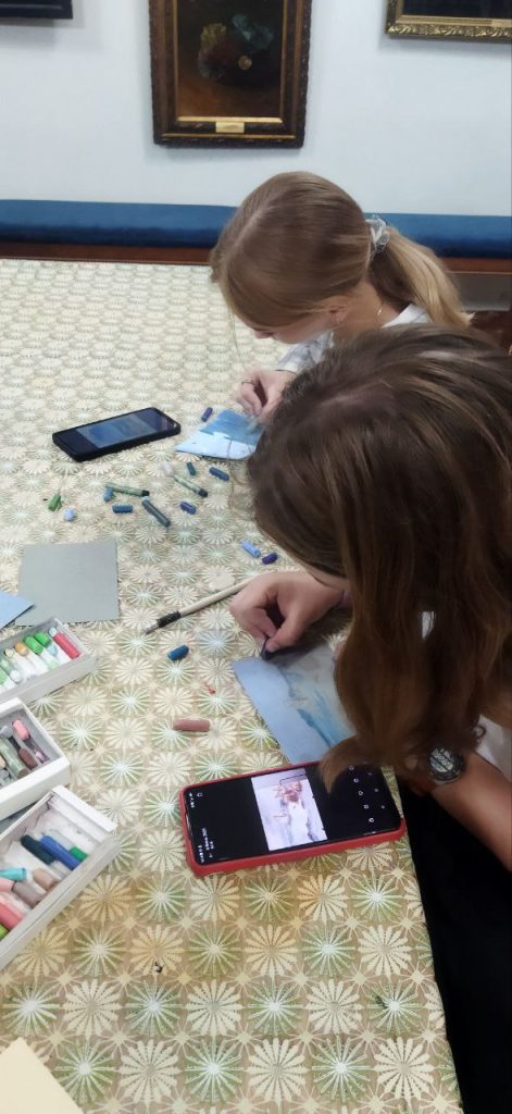 🎨👍 Юные художники создали морские пейзажи, вдохновившись картинами великого русского мариниста И.К.Айвазовского, посетив экспозицию музея.