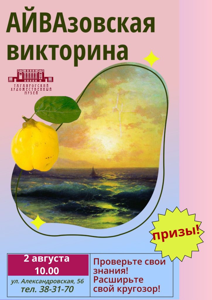 В субботу, 2 августа, в 10.00 приглашаем вас в скульптурный дворик художественного музея на «АЙВАзовскую викторину»!