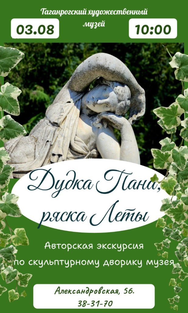 Друзья! В воскресенье 3 августа Таганрогский художественный музей завершает сезон экскурсий в нашем замечательном скульптурном дворике!