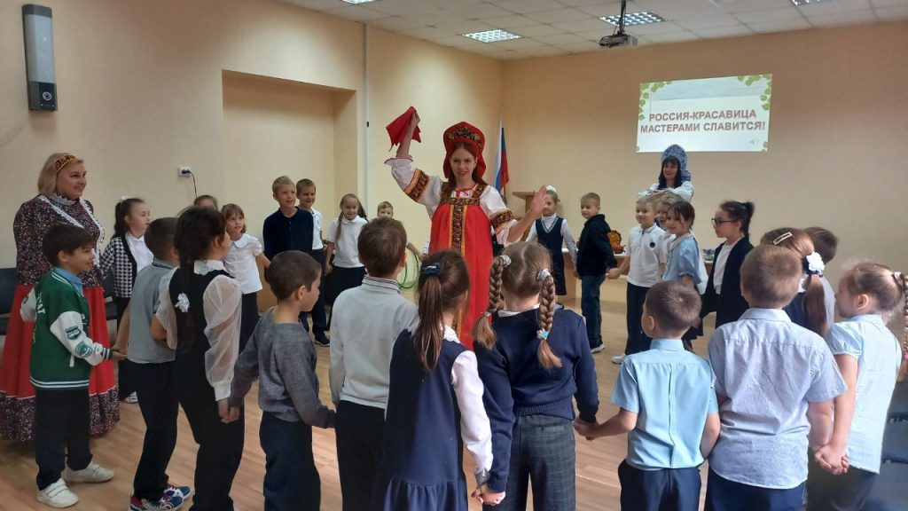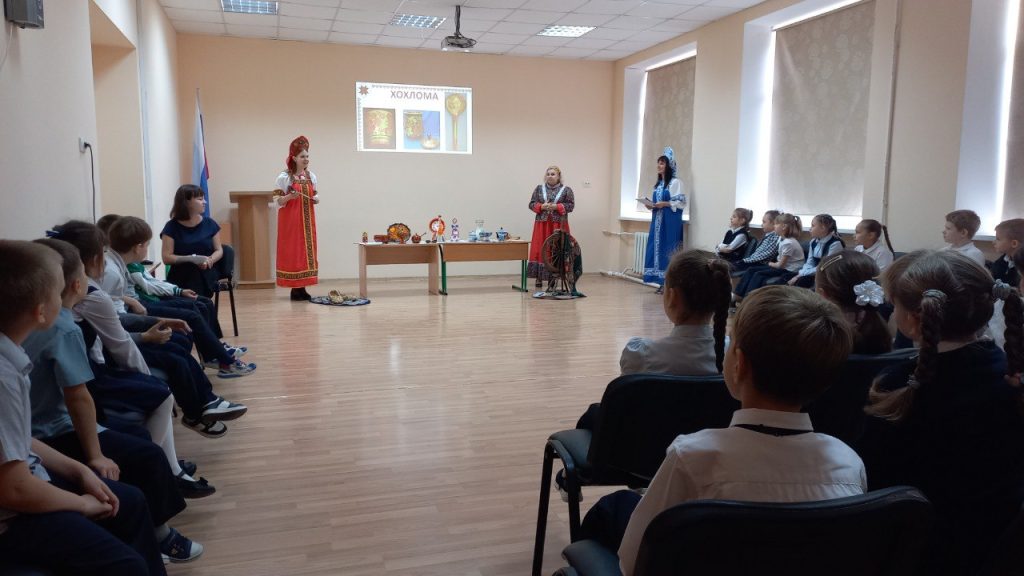Сегодня в школе №28 для учеников младших классов состоялась премьера новой интерактивной программы Таганрогского художественного музея «Россия-красавица мастерами славится».