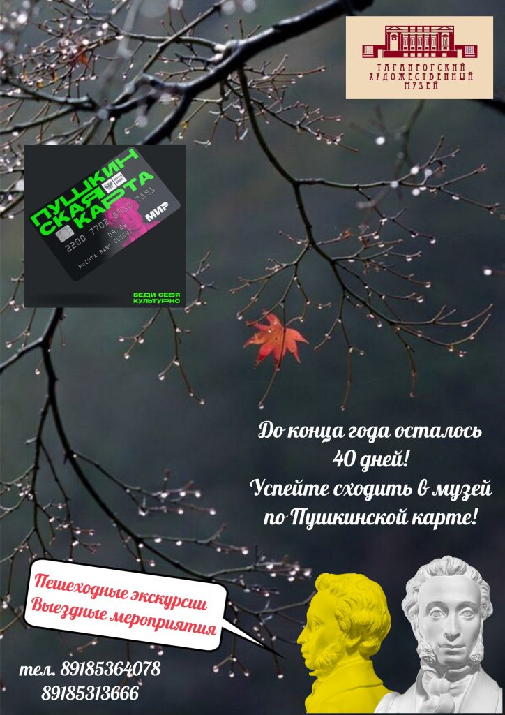 ⏱️ Заканчивается год, заканчивается срок действия Пушкинской карты, возможности потратить средства на культурные мероприятия.