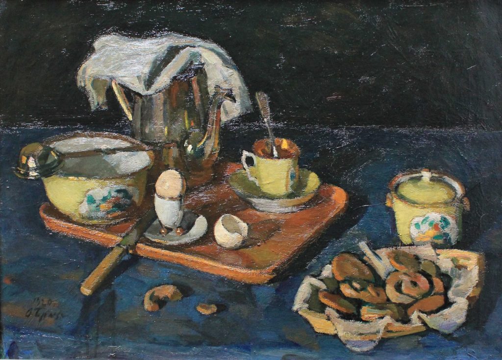 🌟 Особое место в коллекции Таганрогского художественного музея занимает его работа «Натюрморт» (1920). На полотне изображён завтрак: чайный сервиз зелёновато-жёлтого оттенка с позолотой и яркой росписью. Подпись художника слева внизу: «1920 О. Браз» — словно подпись времени, застывшего в красках и свете.