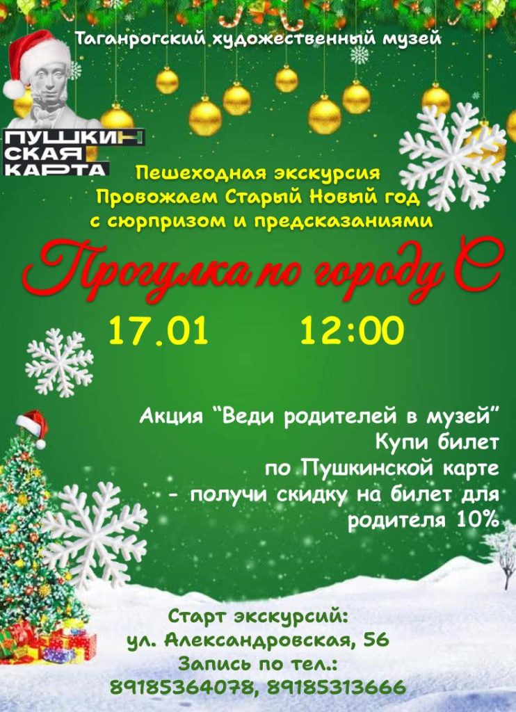 🎄✨Дорогие друзья! Проводим старый новый год с Таганрогским художественным музеем! 17 января в 12:00 состоится пешеходная экскурсия «Прогулка по городу С» с сюрпризами и предсказаниями!