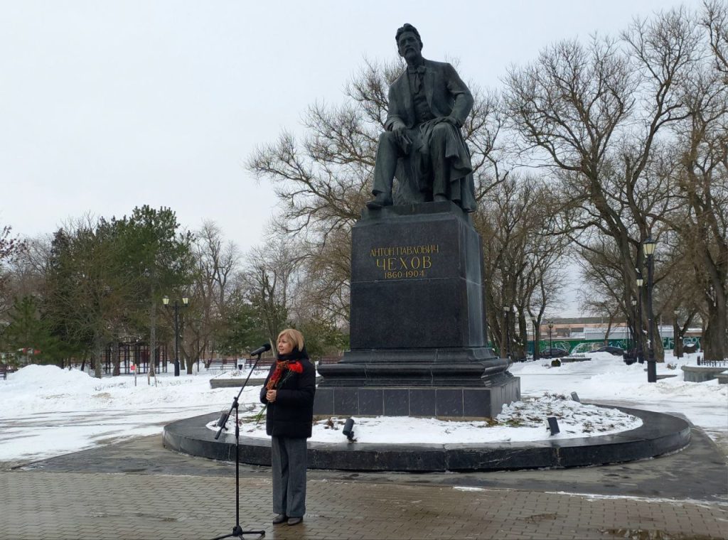 Сотрудники Таганрогского художественного музея приняли участие в городском торжественном мероприятии, возложив цветы к памятнику писателю.