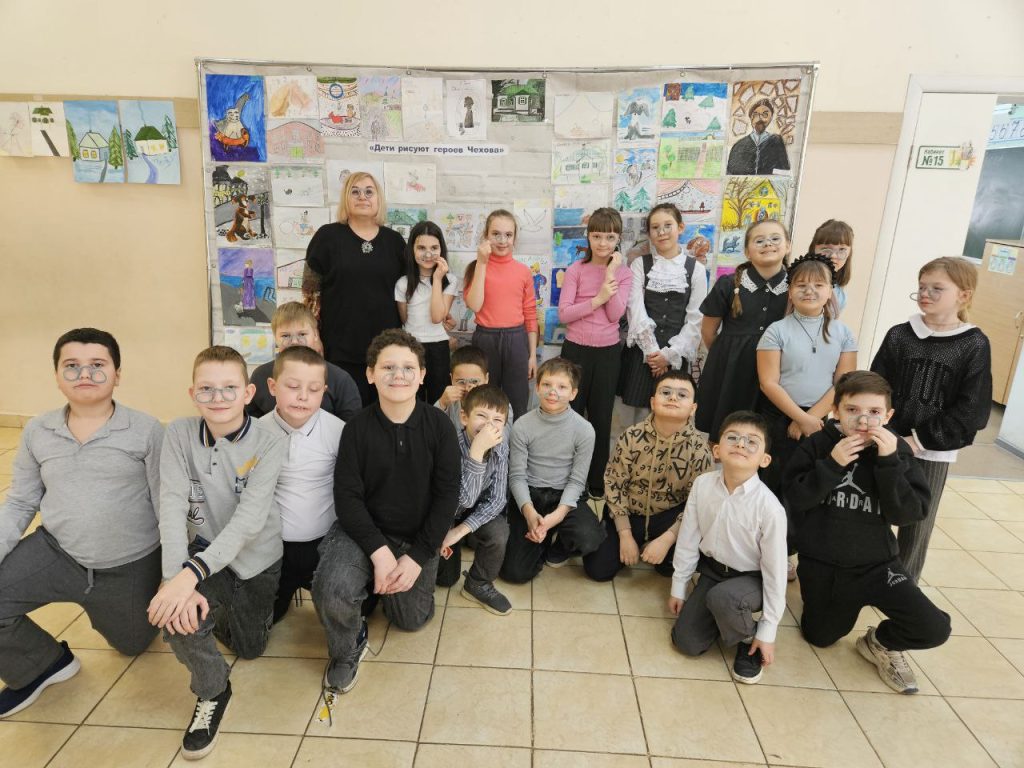 🎨Примерив образ писателя, многие ребята сразу преобразились. С большим удовольствием они показали работникам музея свои рисунки, представленные на школьной выставке «Дети рисуют героев Чехова».