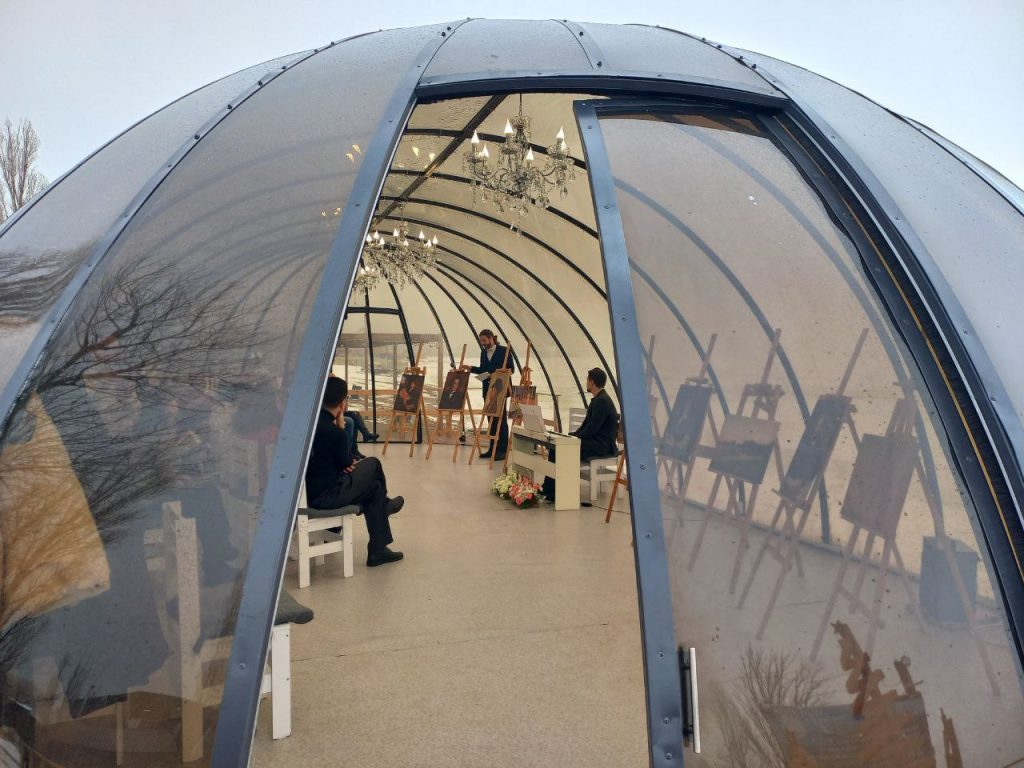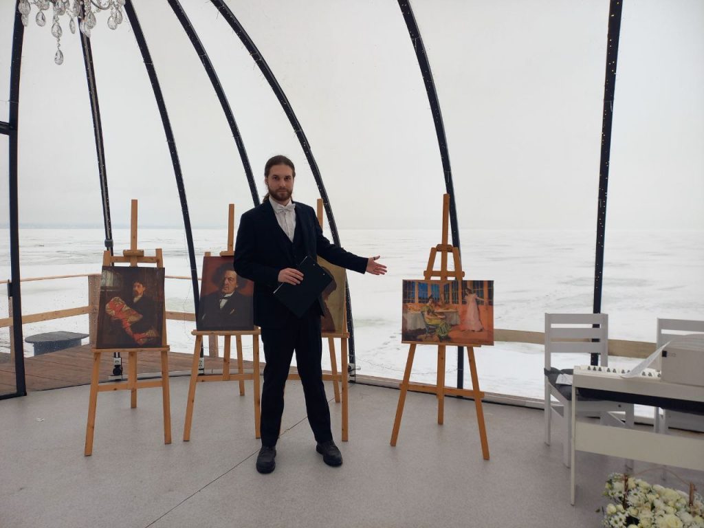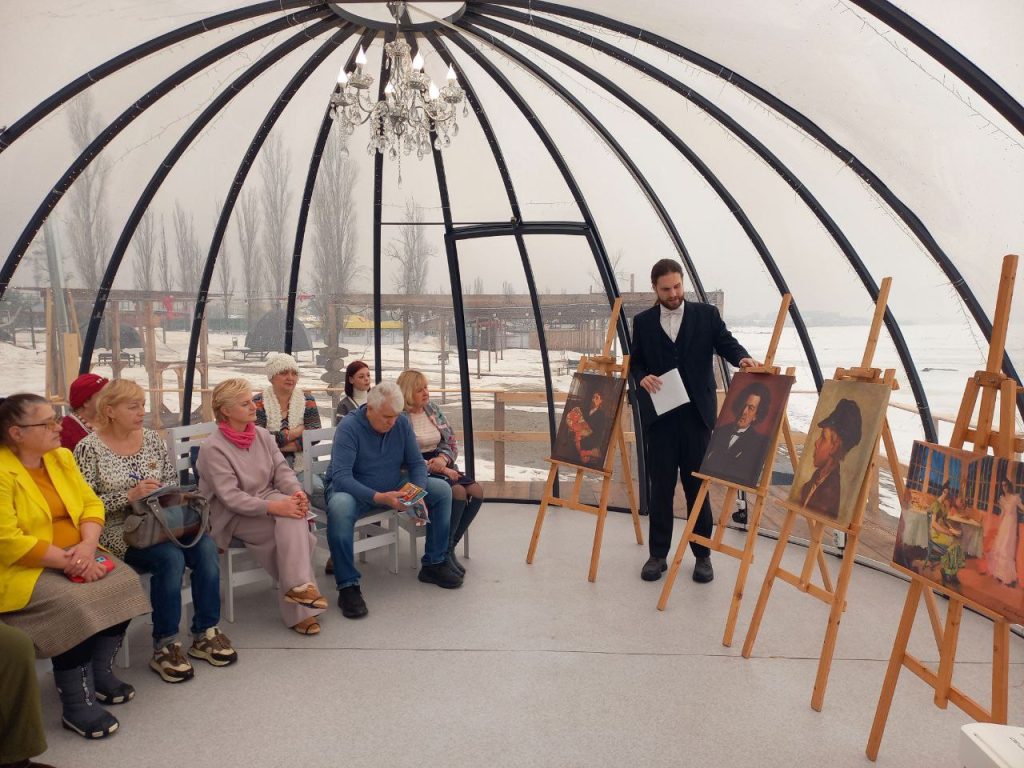 Площадкой совместного проекта «Картины в чеховском пенсне» на этот раз стал «ИглуПарк Медуза». Таким образом, трамвайный вернисаж «на колёсах» совершил крутой вираж под прозрачный купол иглу с видом на заснеженный Таганрогский залив. В новой локации интересный рассказ о дружбе А.П. Чехова с прекрасными русскими художниками и другими творческими людьми, прославившими Россию на весь мир, очаровал всех участников необычной атмосферой и подарил незабываемые яркие впечатления. ТХМ по традиции подготовил гостям много сюрпризов: весёлые истории из жизни великих, но таких простых в общении гениев, дал возможность «посетителям» попробовать себя в роли литературного персонажа и проверить свои знания в области изобразительного искусства. «Судаков Тревел» со своей стороны тоже подготовил памятные сувениры.Победители получили сертификат ТХМ на пешеходную экскурсию для двоих и баночку авторского варенья.Украшением вернисажа стало музыкальное сопровождение талантливого исполнителя и композитора Даниила Топольского.