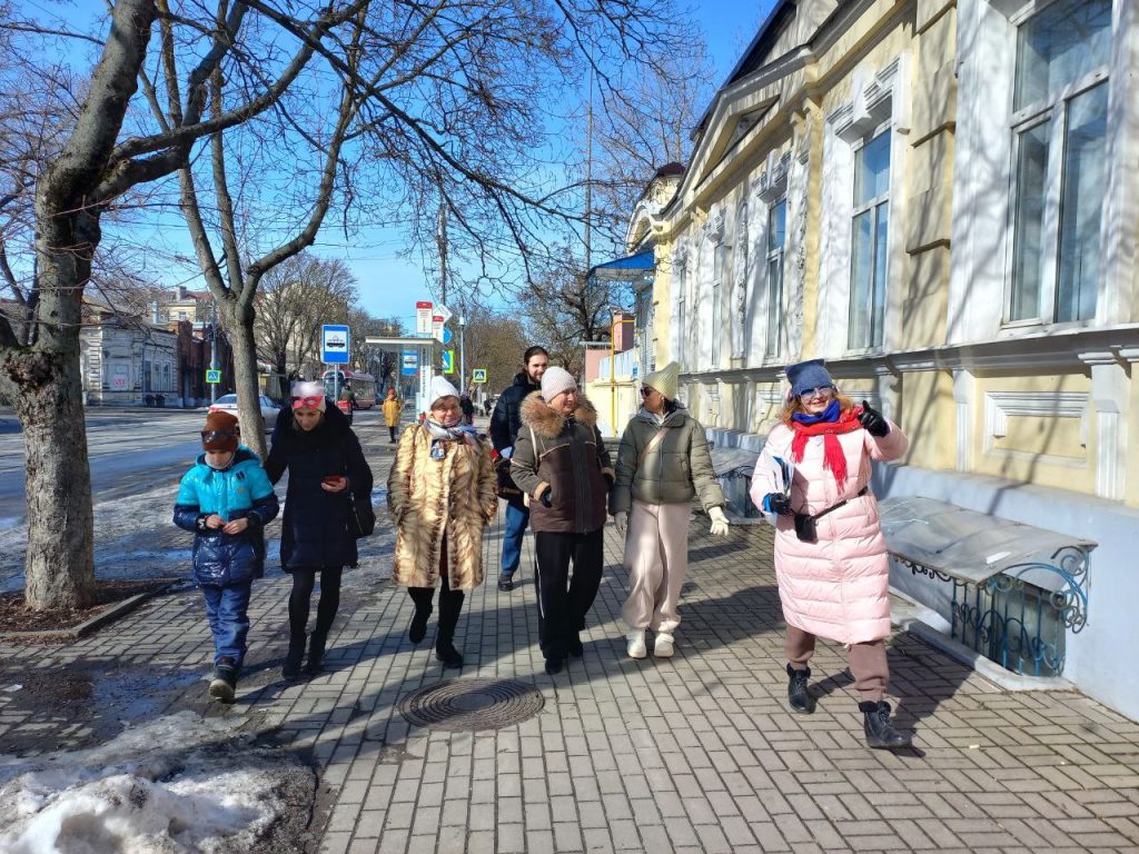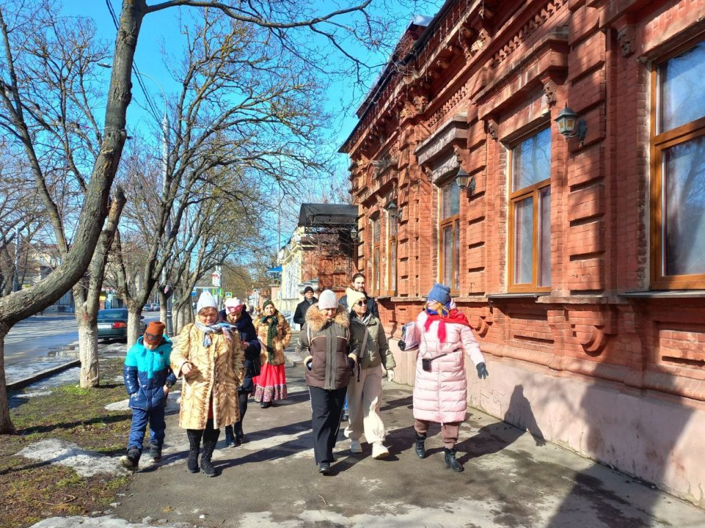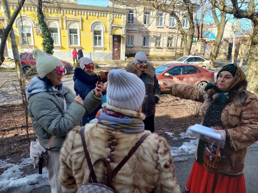 Её темой стали проводы зимы — «Душа моя, Масленица». Зима в этом году успела порадовать таганрожцев снегом и настоящими трескучими морозами, но пора и честь знать! Спешим весне навстречу с традиционными блинными застольями и хорошим настроением.Участники прогулки вместе с экскурсоводом и «Масленицей» прошли по старому кварталу и узнали, как раньше провожали зиму жители многонационального Таганрога — русские, греки, итальянцы, армяне и евреи, а также представители других народностей. Послушали блистательный — в масленичную тему юмористический рассказ А.П. Чехова «О бренности», станцевали сиртаки и армянский танец с живым огоньком.И, конечно, не обошлось без сюрпризов, тематических загадок с призами, игр и сжигания символического чучела. После прогулки всех согрел ароматный горячий чай с баранками. Всем, кто был с нами в этот зимний день — тёплой весны и самых ярких эмоций. Мы стараемся, чтобы вы получали новые знания, делали для себя неожиданные открытия и дарим только хорошее настроение!