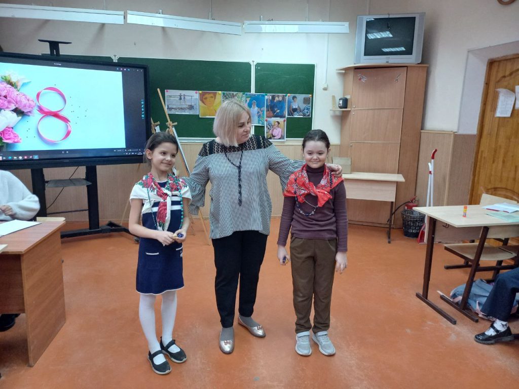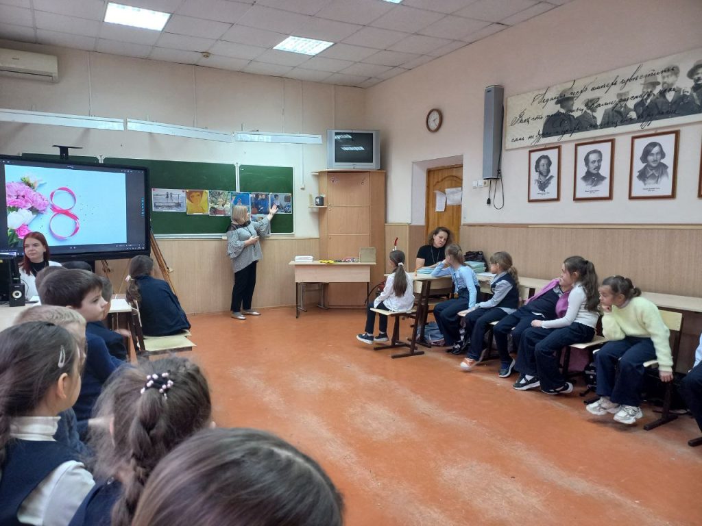 В преддверии праздника к ученикам начальных классов школы №9 пришли сотрудники Таганрогского художественного музея. На примере представленных репродукций они рассказали много интересного о женских портретах из коллекции ТХМ, о канонах красоты в разные эпохи, о стремлении художников запечатлеть эту красоту на холсте. И тут же дали возможность ребятам проявить свои художественные таланты, в игровой форме провели мини-викторины с загадками и конкурсами, а также мастер-класс по изготовлению для мамы поздравительной открытки — яркой, красочной, рукотворной, а потому — самой неповторимой.