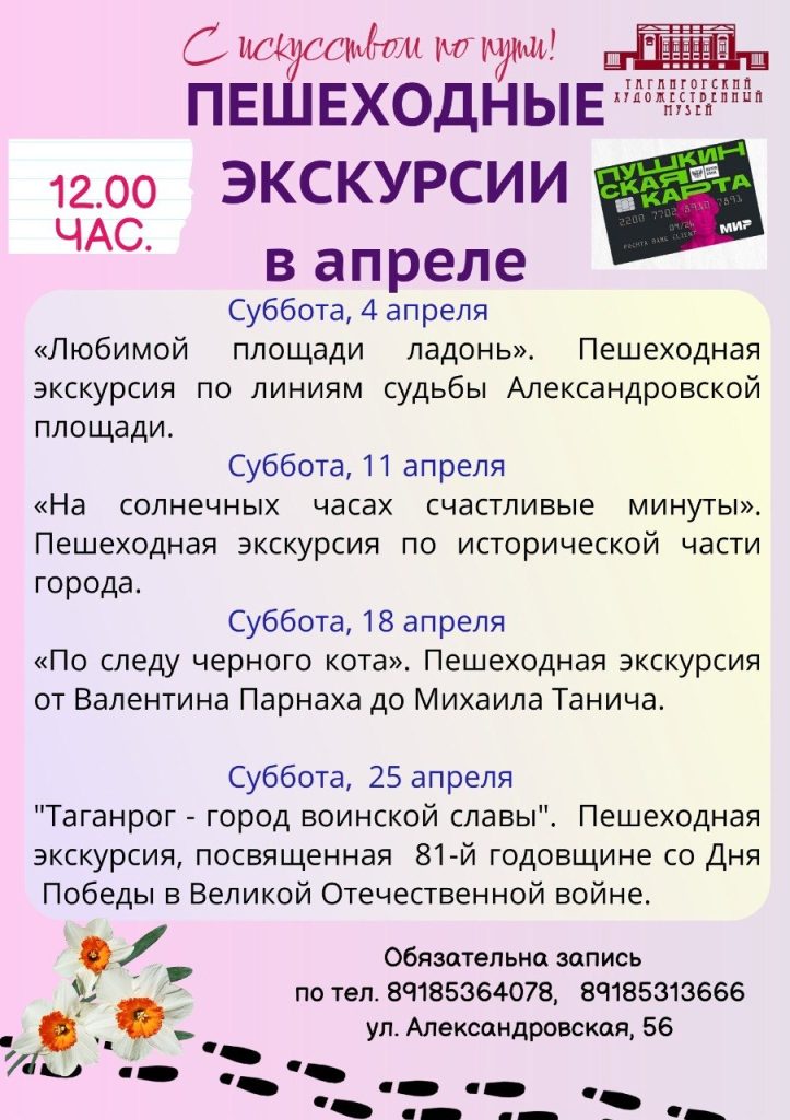 🌸Таганрогский художественный музей приглашает вас на уникальные пешеходные экскурсии по выходным. Каждую субботу мы ждём вас в 12:00 по адресу: улица Александровская, 56.