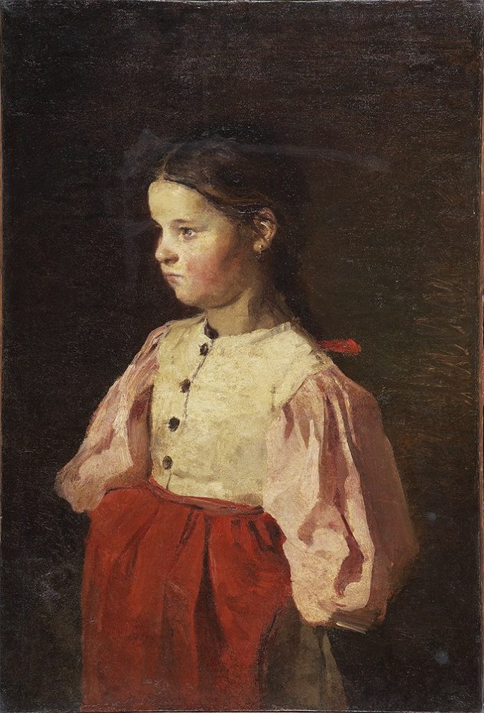 Картина из собрания Таганрогского художественного музея «Крестьянская девочка в красном фартуке» (II половина ХIХ века) — проникновенный образ юности и простоты. В этой работе, как и во многих других, проявилось внимание мастера к жизни русского народа.