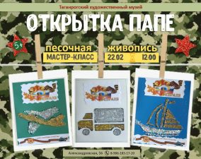 Читать далее...С наступающим праздником — Днем защитника Отечества! 🔥23 февраля в 11.00 в Таганрогском художественном музее состоится мастер-класс для детей «Символы Победы в поздравительных открытках», посвященный празднованию Дня защитника Отечества.Ребята познакомятся с таким направлением изобразительного искусства, как почтовые художественные открытки, рассмотрят различные варианты открыток к 23 февраля и 9 мая советского периода и современные открытки. Предметом […]