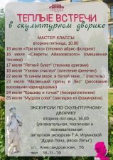 Читать далее...☀️Неделя с 7 по 11 июля в художественном музее выдалась очень активной. 🖼 Здание музея закрылось на ремонтно-реставрационные работы. Картины экспозиции бережно перемещались в фондохранилище. ❤️🧡💜🤝Зато в скульптурном дворике проходили теплые встречи. Состоялась серия мастер-классов в рамках цикла «Летняя мастерская чудес». 🧑🎨👩🎨 Юные мастера создавали замечательные работы, проявили отличные творческие способности и фантазию. Мы рады […]